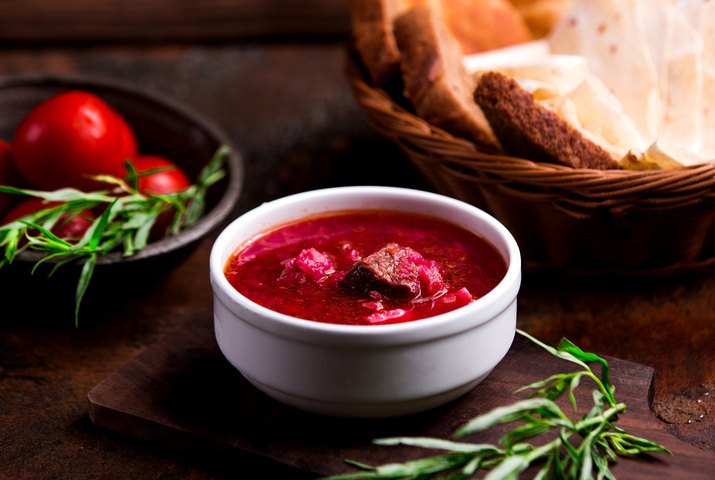 Борщ с томатной пастой получается ярким и ароматным! Благодаря говяжьему бульону вкус этого блюда будет насыщенный, но в зависимости от личных предпочтений можно использовать и другие виды мяса: курицу, индейку, свинину или даже крольчатину.